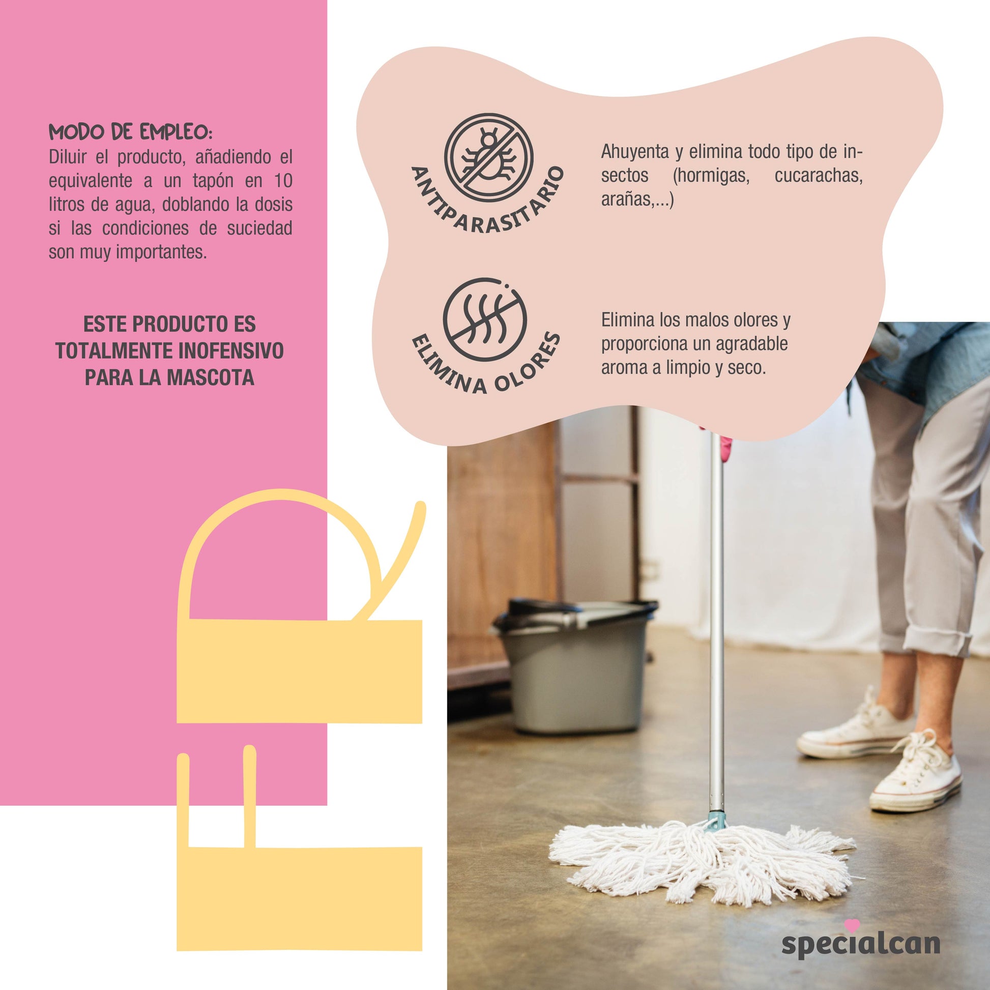 Fregasuelos Limpiador para Hogar con Mascotas Specialcan 1L | Seguro
